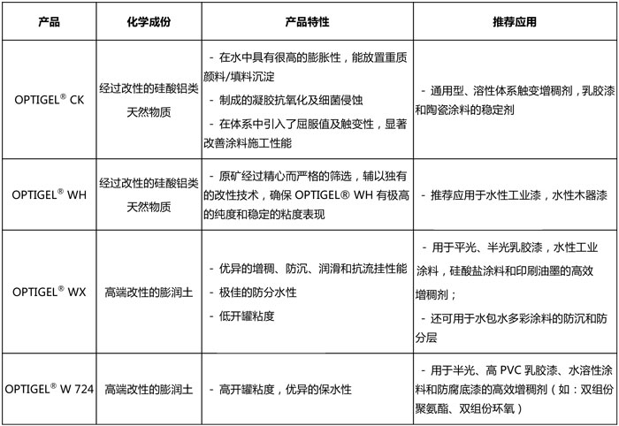 清風化工提供德國畢克化學(原洛克伍德ROCKWOOD)的OPTIGEL系列獨特的流變助劑。OPTIGEL系列選自天然水性膨潤土,經(jīng)過不同的改性從而產(chǎn)生不同的增稠流變狀態(tài),提供優(yōu)異的穩(wěn)定性、防沉性、增稠性、觸變性、保水性和潤滑性,可廣泛用于建筑涂料的造型漆和浮雕漆。同時還適用于水性工業(yè)涂料。